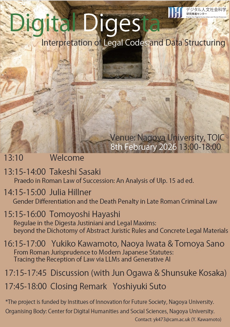 2026年2月8日(日)「Digital Digesta:法典の解読とデータの構造化(Interpretation of Legal Codes and Data Structuring)」(名古屋大学TOIC)